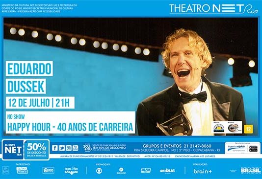 “Bacana é que o Theatro Net Rio tem uma tradição de música que tem a ver com todos nós e, além do mais, como Carnegie Hall (em Nova York) não tinha data, acho que o Net Rio substitui muito bem”, brinca Dussek. E, completa: “Tudo com muito amor, bom humor e pulsação emocional a mil. Quero divertir meu publico como nunca! Conto com vocês lá no dia 12 de julho”.