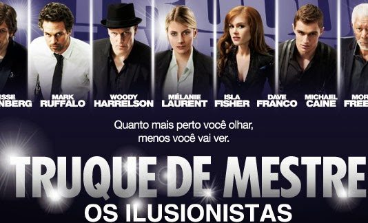 truqueJesse Eisenberg, Isla Fisher, Woody Harrelson e Dave Franco interpretam quatro mágicos ilusionistas que formam um quarteto fantástico chamado de The Four Horsemen.(Os 4 caveleiros). O que poucos sabem é que, enquanto encanta o público com suas mágicas sob o palco, o grupo também rouba bancos em outro continente e ainda por cima distribui a quantia roubada nas contas dos próprios espectadores. Estes crimes fazem com que o agente do FBI Dylan Rhodes (Mark Ruffalo) esteja determinado a capturá-los de qualquer jeito, ainda mais após o grupo anunciar que em breve fará seu assalto mais audacioso. Para tanto, ele conta com a ajuda de Alma Dray (Mélanie Laurent) uma detetive da Interpol, e também de Thaddeus Bradley (Morgan Freeman) um veterano desmistificador de mágicos que desmascara os truques da trupe.