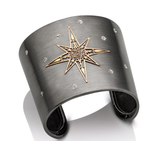rosa dos ventosA pulseira Rosa dos Ventos – de ouro rosé, prata, ródio negro e diamantes – remete ao bracelete usado pela personagem do filme, podendo ser usada inclusive uma em cada braço garantindo um estilo único a quem usar. Ainda no mesmo look, é possível um mix and match com a simplicidade da pulseira Gold, trazendo à mulher mais segurança.