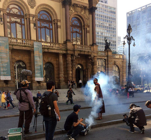 A dramaturgia abre uma das matérias. Um formato que vem sendo muito explorado no quadro e tem sido um sucesso. O público adora. A cena foi gravada em frente ao Theatro Municipal de São Paulo. “A ideia é contar a trajetória do herói, presente nos filmes, nas novelas, na literatura e na vida das pessoas. Quem não passou por histórias de superação na vida? Quem não foi herói na sua jornada de vida?”