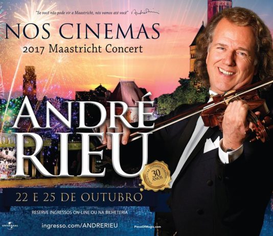Em outubro, o violinista e maestro holandês, conhecido como “astro pop da música clássica”, apresenta nos cinemas brasileiros o show André Rieu’s 2017: Maastricht Concert, em que comemora três décadas ao lado de sua orquestra de 60 músicos, a Johann Strauss. As exibições acontecem nos dias 22/10, às 15h e 25 /10, às 20h.