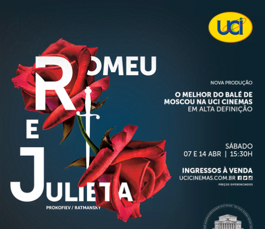 “Romeu e Julieta”, do Bolshoi, chega em alta definição aos cinemas UCI nos dias 7 e 14 de abril. O balé é um dos clássicos da temporada 2017-2018 da companhia russa, que ainda vai apresentar “Giselle” e “As Chamas de Paris”. As sessões acontecem em abril, maio e junho, sempre em dois sábados por mês às 15h30. Os ingressos já estão à venda e os clientes UNIQUE pagam meia-entrada, através do site ucicinemas.com.br .