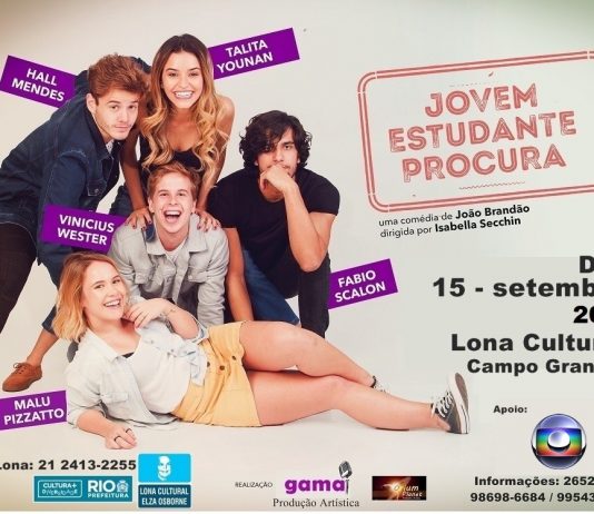 Imagine você ter de alugar os quartos do seu apartamento para pessoas que você nunca viu para ajudar a pagar as despesas de casa? Esse é o ponto de partida da comédia adolescente de João Brandão (Prêmio Coca Cola em 1999). Com direção de Isabella Secchin, a montagem alia emoção e humor para retratar a inserção dos jovens no universo adulto. A peça apresenta as transformações inevitáveis para a maturidade, em que a entrada no mercado de trabalho, as conquistas e decepções amorosas, ajudam a lapidar a personalidade ainda em formação. “O texto é muito atual e explicita toda essa efervescência que o adolescente tem.