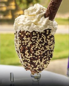 Inspiradas em chocolates famosos, as sobremesas estão disponíveis nas seguintes versões: Kinder Bueno, Chokito, Oreo, Prestígio e Avalanche. Após decidir entre qual destas “decorações” optar, o cliente escolhe entre os 36 sabores de sorvete oferecidos pela casa. Entre as sugestões que fazem sucesso, Ninho Trufado e Ovomaltine Branco.