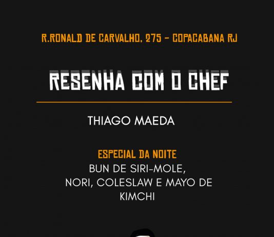 Um dos principais representantes da culinária japonesa contemporânea no Brasil, Maeda vai assumir os fogões da cozinha junto com o ex companheiro do Bagatele Rio, Philipe Martins, o chef da casa. Com menu feito especialmente para noite, o chef levará para Copacabana algumas das suas especialidades, como o bun de siri mole com nori, coleslaw e mayo de kimchi, o smash Burger com 110g de wagyu, queijo monterey e mayo de tonaktsu no pão brioche e a asian chicken wing, asinhas levemente picantes com pimentas fermentadas, gengibre e amendoim. O mochi de sorvete de oreo encerra o menu. Imperdível!