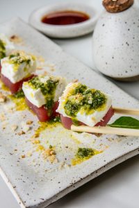 Da cozinha quente, destacam-se o risoto de camarão ao alho poró (risoto de camarão ao alho-poró crocante e ervilha com wasabi – R$55) e o polvo grelhado ao pesto (polvo grelhado no azeite de ervas finas, com molho pesto, acompanhado de purê de batata doce com castanha de caju e gengibre, shiitake e tomate cereja confit – R$69). Na categoria “Sushi Crocante” são quatro opções que mesclam alguns sabores clássicos da casa como o Sushi crocante com cobertura de crunchy roll (R$18), feito com 4 unidades de sushi crocante coberto com tartare de atum e salmão, toque de azeite de ervas e gotas de shoyu.