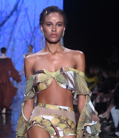 A beleza das modelos, que tem concepção de Renato Oliveira e execução da equipe do Senac, ganha inspiração em uma Maria Bonita, uma mulher solar, com aplicação de grampos nos cabelos e tons de barro na pele.