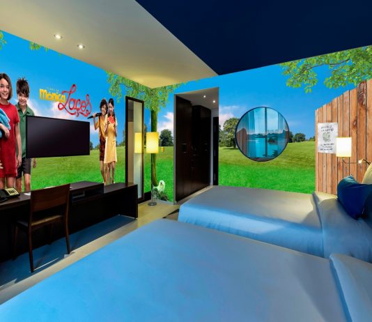 O hotel Grand Mercure Riocentro lança nesta quinta-feira, dia 27 de junho, o quarto temático do filme “Turma da Mônica – Laços”, um dos mais aguardados do ano, que será lançado nos cinemas na mesma data. Dirigido por Daniel Rezende, o primeiro live-action dos inseparáveis amigos criados por Mauricio de Sousa, em 1959, irá decorar um apartamento Luxo do cinco estrelas, com vista para a Lagoa de Jacarepaguá e montanhas da região até o dia 28 de julho, período de férias escolares.