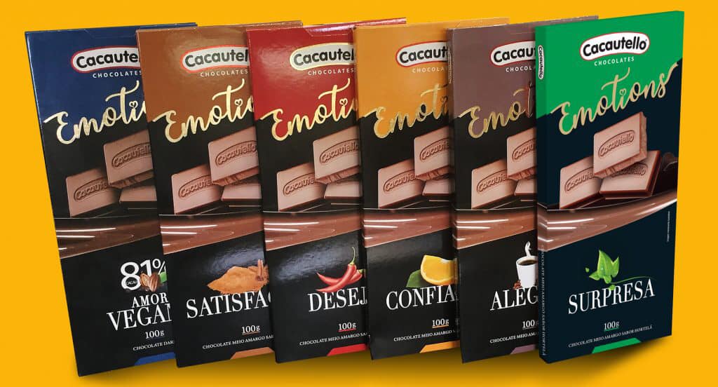 Partindo disso, a Frutiquello, por meio de sua marca Cacautello, desenvolveu uma linha de chocolate chamada Emotions, que faz uma combinação do chocolate meio amargo a ingredientes estimulantes como pimenta, canela, café, entre outros, potencializando sua capacidade de dar energia.