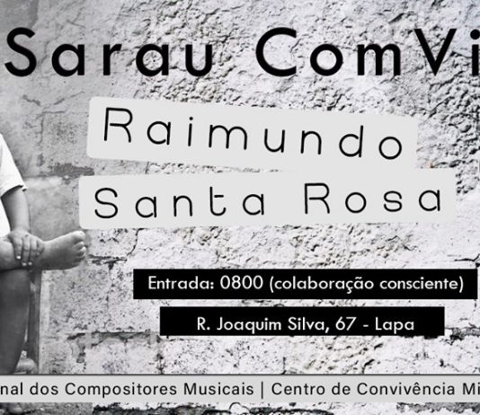 O Sarau ComVida desta terça, dia 19 de novembro, vai receber o músico, compositor, agitador cultural e fotógrafo premiado Raimundo Santa Rosa, a partir das 19h, na Casa Com a Música, na Lapa.
