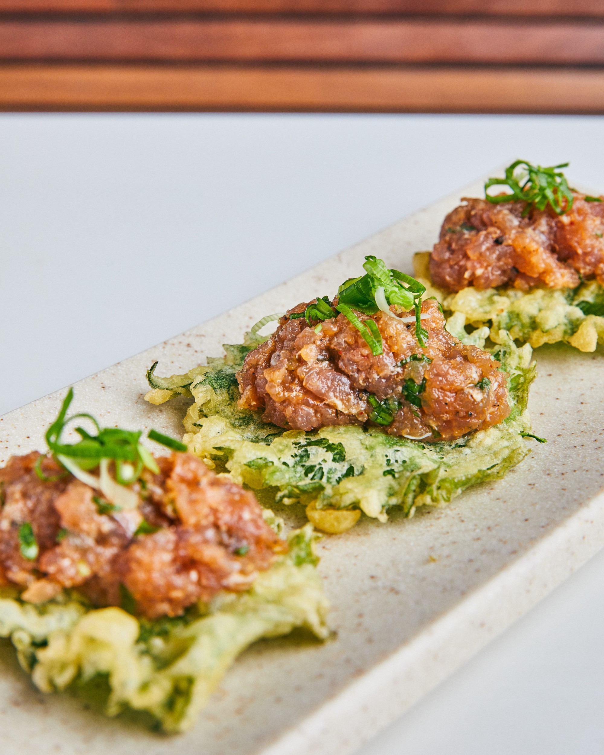 Para começar, o Tempurá de shissô com atum spicy (folhas de shissô no tempurá, cobertas com atum spicy, cebolinha e azeite extra virgem R$29); o Kama de salmão (Barbatanas de salmão grelhadas e temperadas apenas com sal R$12,90); o Ceviche do Dia (cubos de peixe do dia, marinados com cebola roxa, pimenta dedo de moça, pimentão amarelo, tomate cereja e kabotchá finalizados com azeite extra virgem R$25).