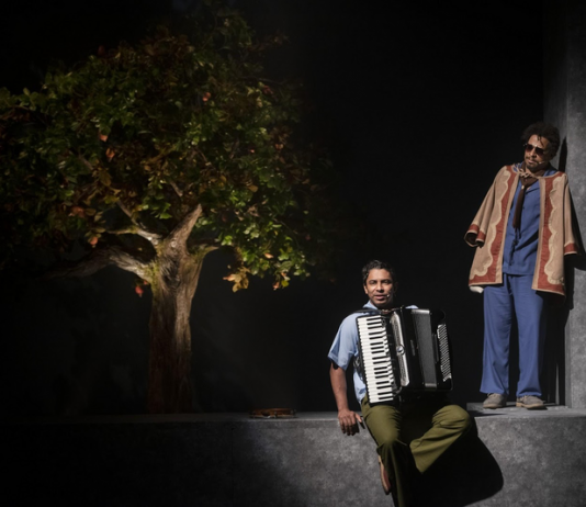 Já a encenação parte de um jogo entre os atores e músicos, que se alternam nos papéis de Dominguinhos e das pessoas que fizeram parte da vida dele. “Este jogo tem tudo a ver com a trajetória de Dominguinhos e com a obra dele. Um homem que viveu para trazer alegria para as pessoas e que conseguia contar, inclusive coisas tristes, de uma forma alegre. A encenação parte desta brincadeira com a plateia para que a gente possa transmitir a energia que ele conseguia levar a todos nós. Quem viu Dominguinhos tocar ao vivo sabe do que estou falando e é isso que vamos tentar reproduzir”, explica Gabriel Fontes Paiva.