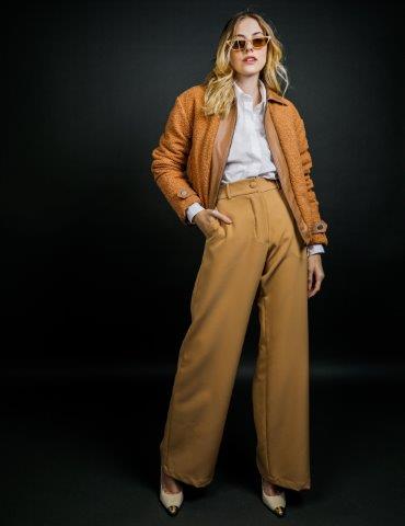 Ícone do inverno, a alfaiataria ganha uma versão na pantalona bege, que conta com leve caimento e cinturas altas. Já nas calças jeans, o detalhamento fica no estilo flare com lavagem mais escura. Todas as peças da coleção foram idealizadas para o dia e para a noite do período mais fashion do ano.