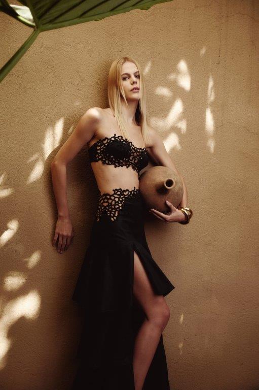 Por meio de uma quantidade exclusiva de peças em uma cartela P&B, a coleção cápsula reinterpreta modelos tradicionais da La Gea, em fusão com a identidade clássica e atemporal da CB. A renda, material que ressoa diretamente com o trabalho da La Gea, se mescla ao chiffon, lycra e linho, criando uma coleção que acompanha a mulher da praia ao cocktail com a mesma elegância, trazendo a essência e bossa do verão ao dia a dia da mulher brasileira.