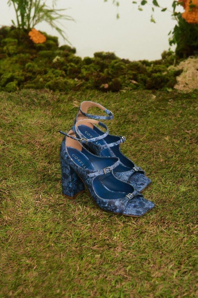 Para a família com estética mais feminina e leve, a grife criou especialmente para esta coleção um jeans exclusivo com a estampa em tons de azul, que combina diferentes flores. Seguindo o mood, os detalhes também foram pensados para incorporar um toque girly, como fivelas delicadas e laços, em modelos românticos, como o mary jane.