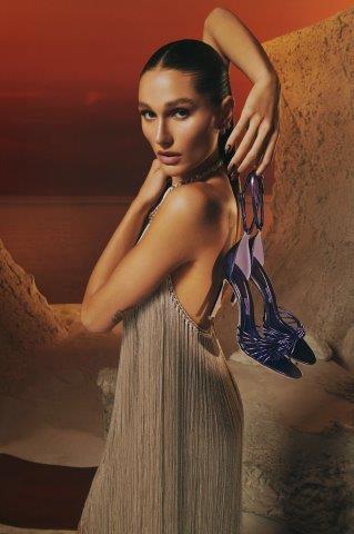 Como key items do lançamento, destaque à sandália com folhas de camurça na ponteira da amarração, à meia pata de corda e à sandália Shiny Lolla com o novo detalhamento de maxi nós cravejados de cristais.