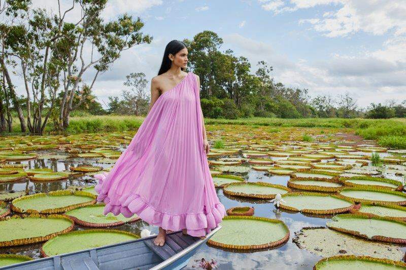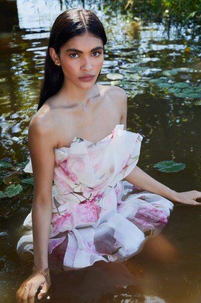 As estampas exclusivas da coleção ficam por conta dos florais, como o print Equilíbrio, no clássico preto e branco; Peônia, com toques de rosa; Intuitiva, com modelos chiffon, que garantem leveza e romance; e, por fim, a Jacquard Floral, que agrega luz ao visual com suas flores douradas de foil em tecido tipo brocado. Os elementos da coleção ficam por conta de flores 3D, laços e assimetria.