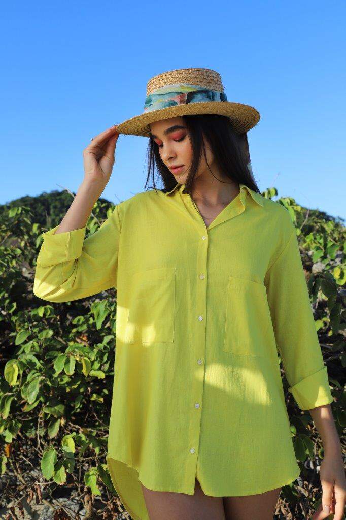 Em contrapartida, as estamparias trazem personalidade e encanto às peças fluídas. “Os elementos das estampas Atlântico e Pacífico foram desenhados e coloridos pensando em diferentes sensações e experiências que já tive nesses dois oceanos: o mais raso, de tons claros, suaves e convidativos para um mergulho, e o escuro, representando o mar grandioso, aberto e noturno, e tão lindo quanto.”, complementa Fernanda.