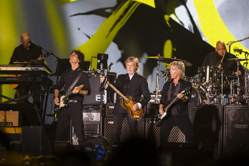 Aliás, a banda é um deleite a parte! Riffs, drumms, saxofone, e ainda rolou até dancinha de um deles no palco, mostrando a sintonia incrível da banda. Paul McCartney foi acompanhado por Paul “Wix” Wickens (teclados), Brian Ray (baixo/guitarra), Rusty Anderson (guitarra) e Abe Laboriel Jr (bateria). Destaque para a participação do trio de metais Hot City Horns: Paul Burton (trombone); Kenji Fenton (saxophone) e Mike Davis (trompete).