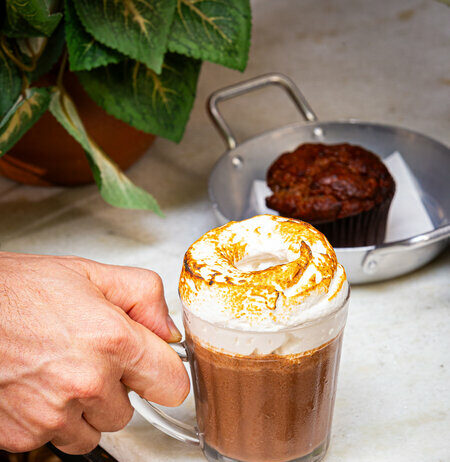 Para harmonizar com as comidas, a bebida criada para o inverno é o Chocolate Quente New York Style: (R$20), chocolate quente da Casa com borda de marshmallow maçaricado.