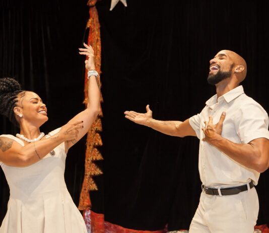 Desde 2018 na Unidos do Viradouro como primeiro casal de mestre-sala e porta-bandeira, Julinho Nascimento e Rute Alves estão acostumados com as multidões da Sapucaí defendendo a bandeira da escola. Desta vez, eles vão estrear em um palco inédito, do teatro. Em cena, os artistas recordam suas trajetórias pessoais e profissionais dançando ao som de diferentes ritmos que fizeram parte de suas histórias na Zona Norte do Rio. Julinho vem de uma família de sambistas (o pai era compositor da Portela). Já na casa da Rute, a família era evangélica e o carnaval não era bem visto, mas essa vocação se desenvolve fora do mundo do samba e ela vai atrás do carnaval.