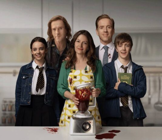 O diretor Euros Lyn, responsável pela adorada série “Heartstopper“, ao conhecer essa série (e gostar dela) fez toda a diferença na forma como se encara Os Radley. O filme abre com uma narração que só é retomada no encerramento, e isso mostra que muito provavelmente o livro também possui a narração, que é dispensada pela produção na maior parte do tempo. Ela serve para nos orientar diante do verdadeiro protagonista da obra, Rowan, vivido por Harry Baxendale de maneira muito honesta. O adolescente é filho de um casal de vampiros, e nem ele e nem sua irmã sabem disso, vindo à tona quando ela tenta se proteger de um estupro. A partir dessa cena logo no início da produção, percebemos que a comédia possível seria um norteador para a resolução de uma história sobre a manutenção do desejo, e suas vertentes dissidentes.