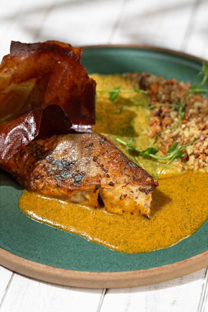 Nas entradas, destaque para o Ovo perfeito, cozido em baixa temperatura com espuma de parmesão, pó de cogumelo, servido com torrada de fermentação natural, para o Crudo de atum, com queijo de cabra, tapioca crocante e azeite de capim limão, e para o Espeto de polvo e camarão com azeite de ervas frescas. A clássica Salada Caesar ganha uma releitura do chef, com molho da casa, croutons crocantes e a opção de acompanhar frango orgânico ou camarões grelhados.