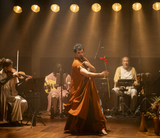 Com uma encenação concebida a partir de quatro cenas – Denúncia, Fe(me)nino, Milagre e Invenção, a proposta do espetáculo é contar “a história de como contamos nossas histórias”, afirma o artista que estará no palco acompanhado por uma banda de quatro músicos.