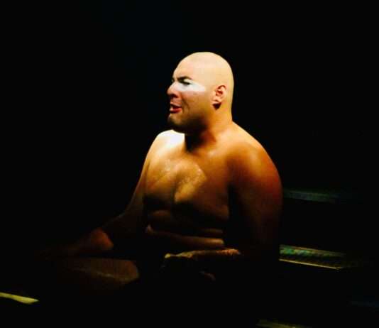 O “PÔA é um espetáculo teatral em que um corpo não-ortodoxo é atravessado por forças que o convocam, o contêm e o expõem. Preso a um lugar que não se fixa – um lugar nenhum – esse corpo é submetido a um regime de estímulos,regras e promessas que operam sem explicação. Toda tentativa aciona o desejo, todo desejo produz frustração. A única interjeição possível, “pôa”, surge como um som primordial, oscilando entre excitação e lamento. Quando escapar deixade ser uma opção, resta sustentar a própria existência. Não há redenção. Há consciência. Nada se resolve. A vida permanece.
