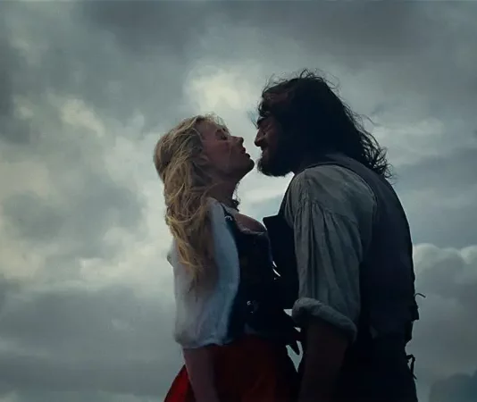 Emerald Fennell traz à cena o erotismo explícito de Saltburn e Bela Vingança. Além disso, o longa abraça visuais deslumbrantes seja no figurino, na direção de arte e na fotografia, enquanto Margot Robbie e Jacob Elordi dão vida ao casal do livro com beleza, exagero (e tesão). Aliás, a química entre os protagonistas interpretados por Margot Robbie e Jacob Elordi é, certamente, sufocante. Ambos estão muito bem! Margot Robbie está ótima em cena, mas cabe a Jacob Elordi se destacar como o bruto Heathcliff. A tensão sexual entre ambos é sólida, e perpetua por corpos quentes por amor e beijos embriagados de amor e tesão, no meio disso, até o melodrama fica ainda mais melodramático.